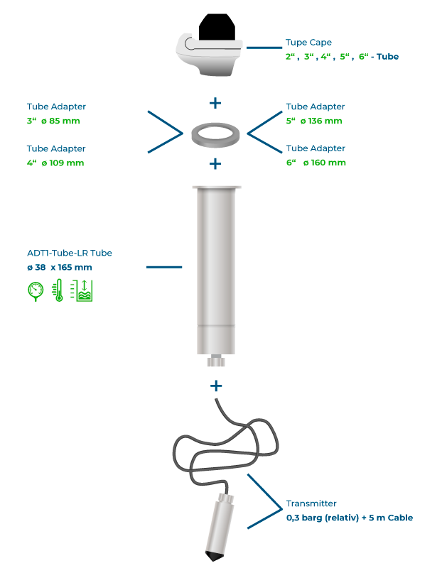 Füllstandrohrkappe für Füllstandrohre von 2" bis 6", geeignet für ADT1